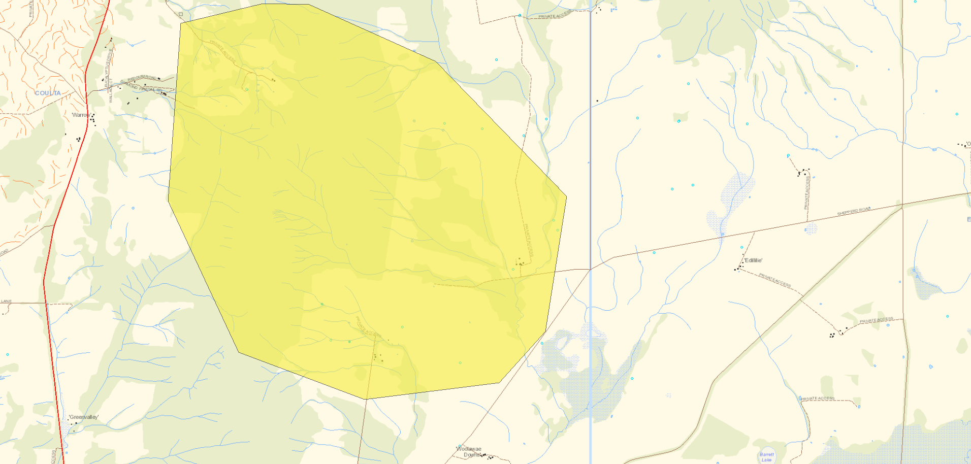 Shapes on this map image indicate the Warning Area to which this message applies. |