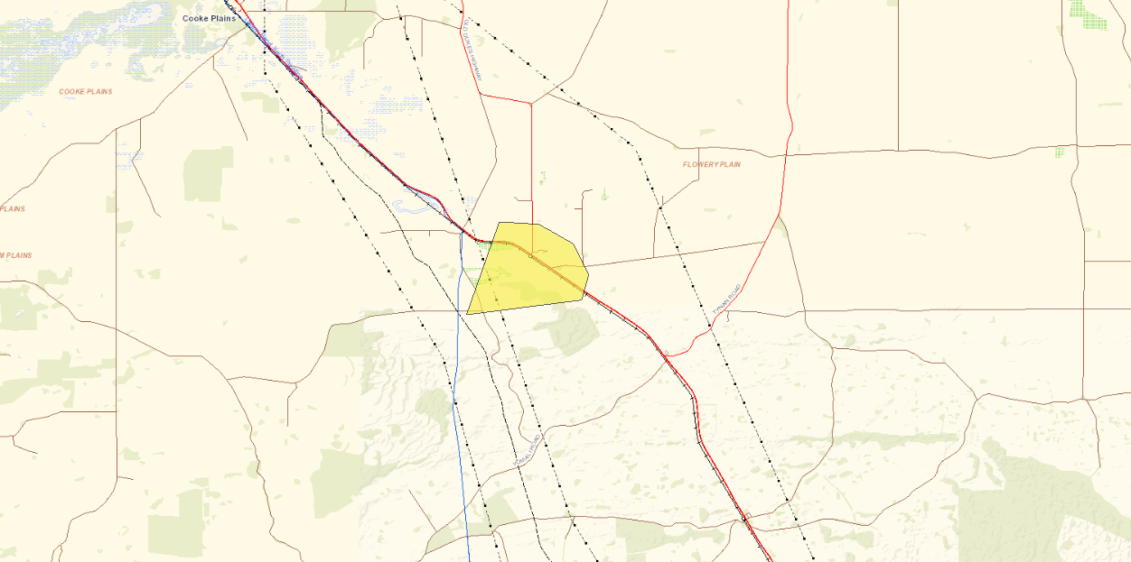Shapes on this map image indicate the Warning Area to which this message applies. |