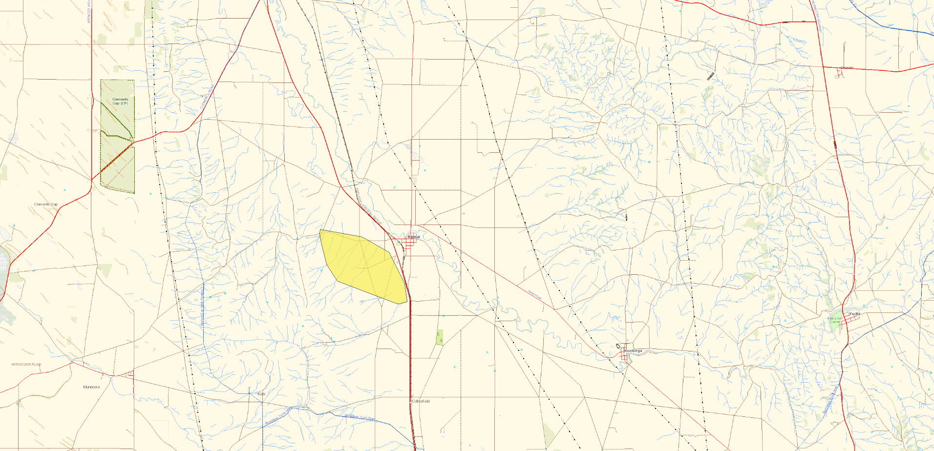 Shapes on this map image indicate the Warning Area to which this message applies.