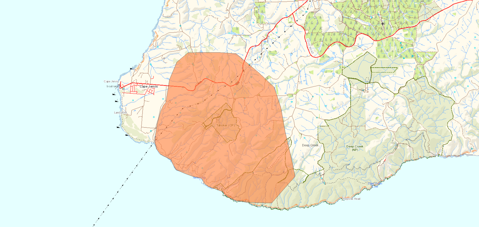 This warning replaces previous warning - Watch and Act issued on 02 Feb 2026 22:23 Issued on Warning area Warning level Action The Deep Creek bushfire is uncontrolled. This scrub fire is burning in a west north westerly direction towards Cape Jervis, Silverton, Deep Creek and Main South Road, north west of the Deep Creek National Park. Conditions are continually changing. For updates, check the CFS website at cfs.sa.gov.au or phone the Information Hotline on 1800 362 361. |