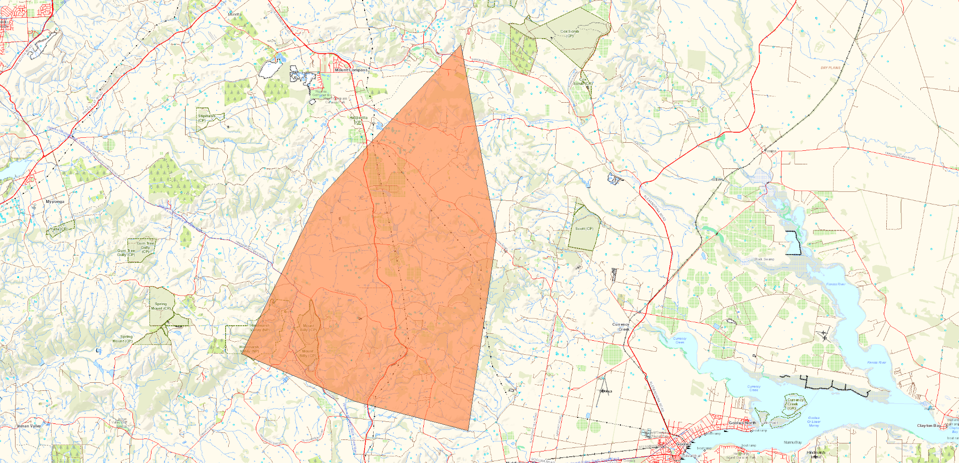 Shapes on this map image indicate the Warning Area to which this message applies. |