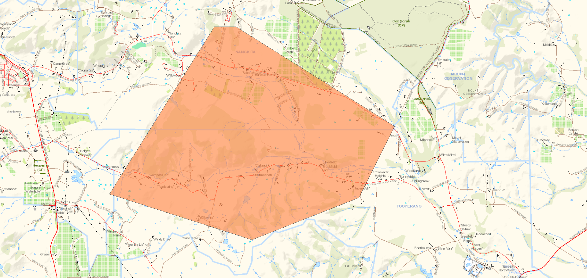 This warning was reissued to correct operational information This warning replaces previous warning - Watch and Act issued on 18 Jan 2026 20:07 Issued on Warning area Warning level Action The Tooperang bushfire is uncontrolled. This scrub fire is burning in a southerly direction towards Nangkita, Mount Jagged and Mosquito Hill townships and Nangkita Road, Cleland Gully Road, Goolwa Road. Conditions are continually changing. For updates, check the CFS website at cfs.sa.gov.au or phone the Information Hotline on 1800 362 361. |